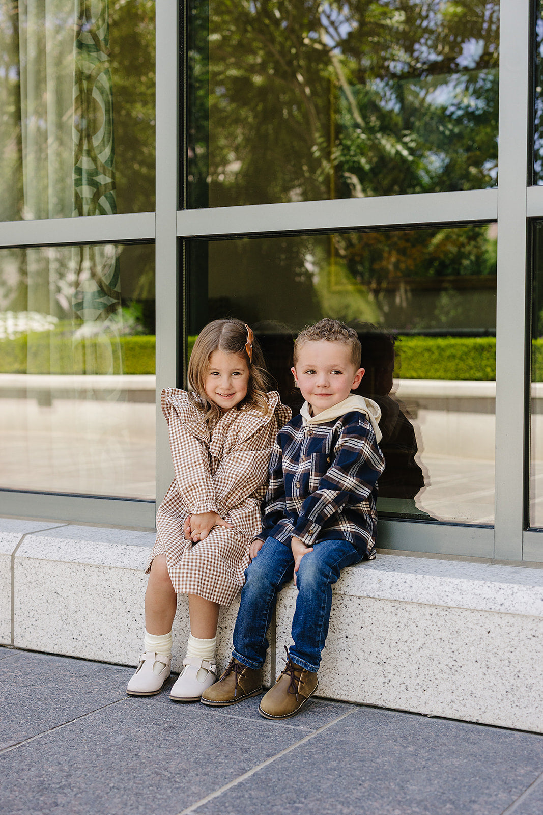 Made from soft, breathable cotton, this dress features a traditional gingham pattern with long sleeves and a delicate ruffle detail beneath the neckline making it a cozy and charming choice for crisp fall days, playtime, or picture-perfect moments.